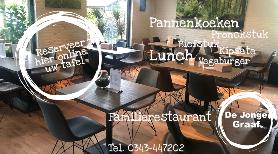 „Graf“ Patrick und „Gräfin“ Sharon heißen Sie im Familienrestaurant De Jonge Graaf herzlich willkommen. Gemeinsam arbeiten sie an einem schönen Konzept: Pfannkuchen, Kanuverleih, Mittagessen, Drinks und Abendessen – direkt gelegen an dem charakteristischen Fluss De Kromme Rijn.